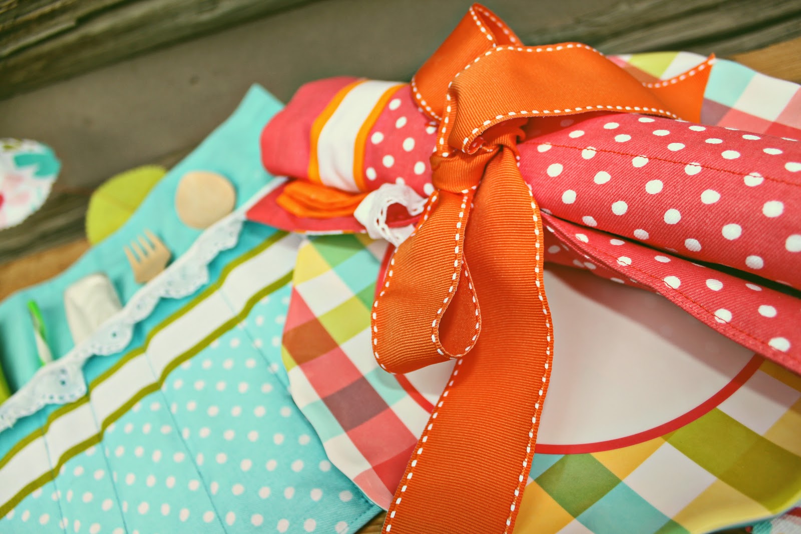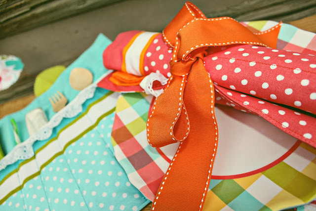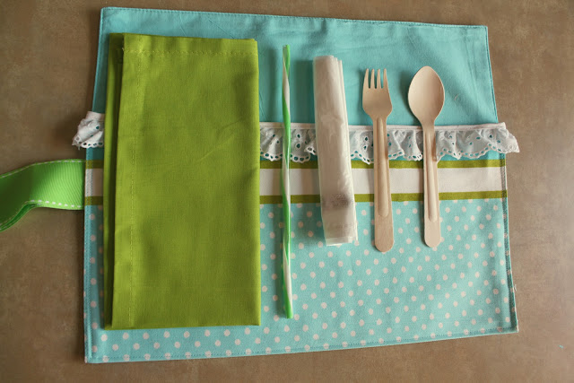 I turned the placemats I found into picnic caddy's.